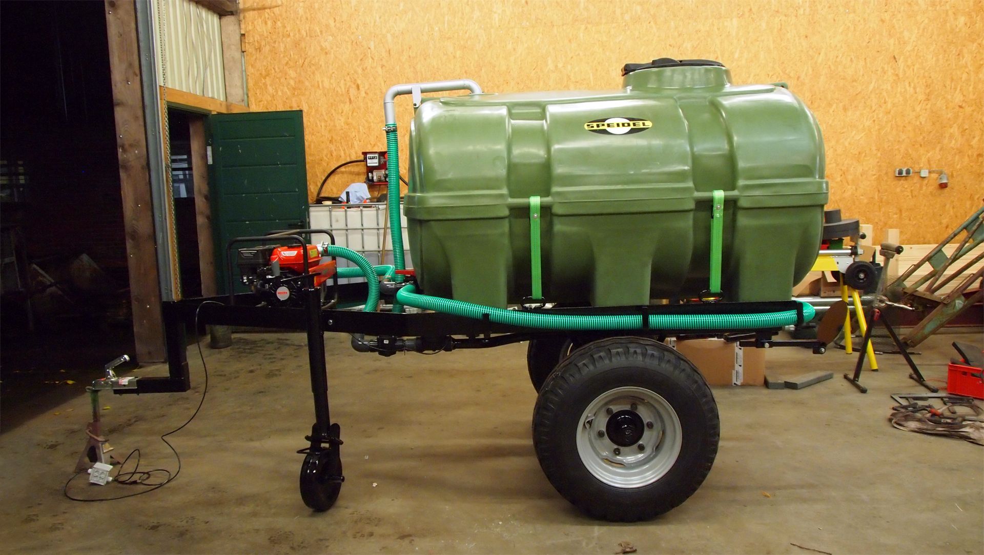 Befüllen des Tanks mit einer Benzinwasserpumpe oder optional mit Ölmotorpumpe des Zugfahrzeuges
